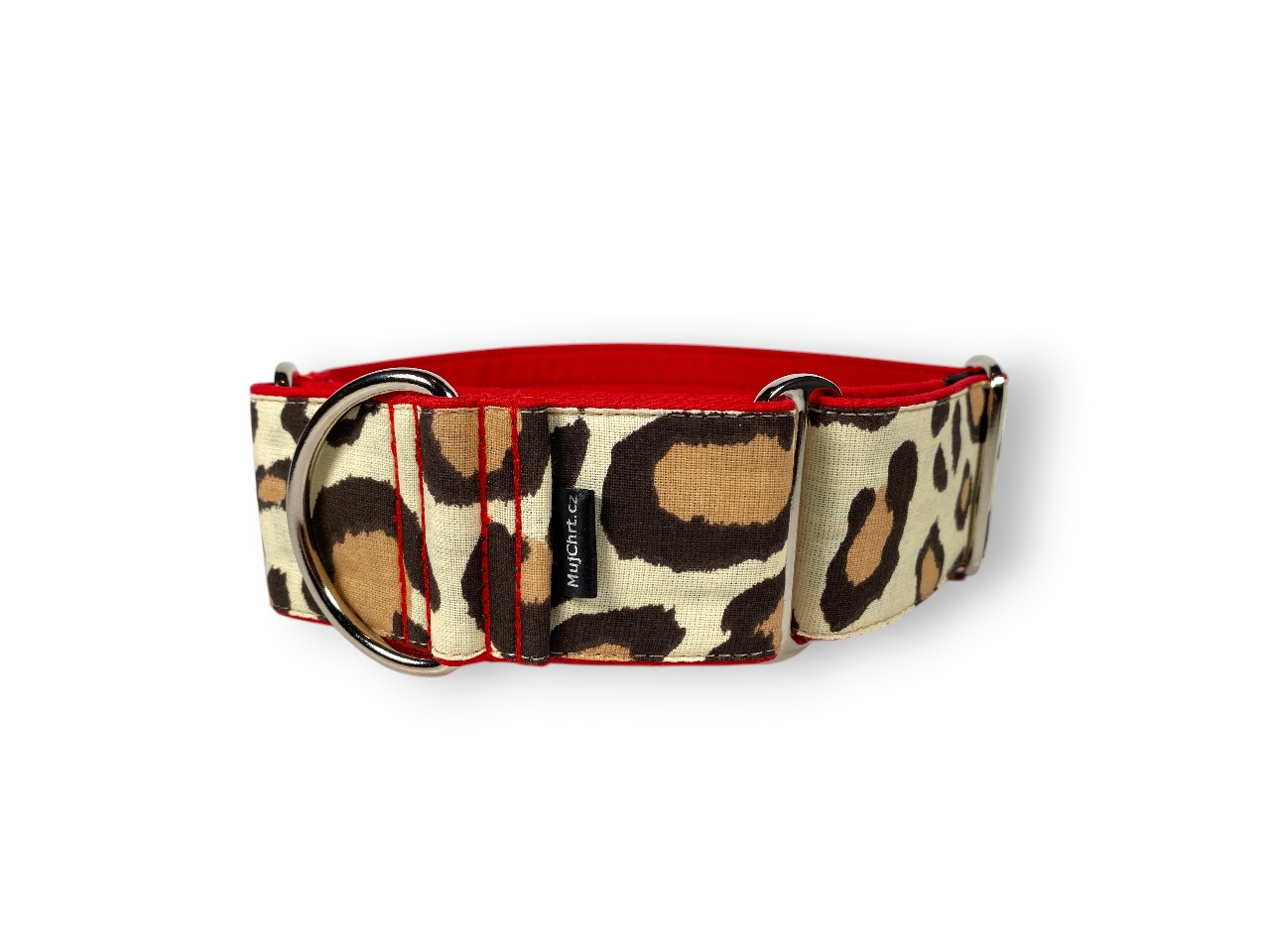 Obojek martingale pro chrta, Leopard je pohodlný, polostahovací obojek v provedení martingale s nastavitelným obvodem.