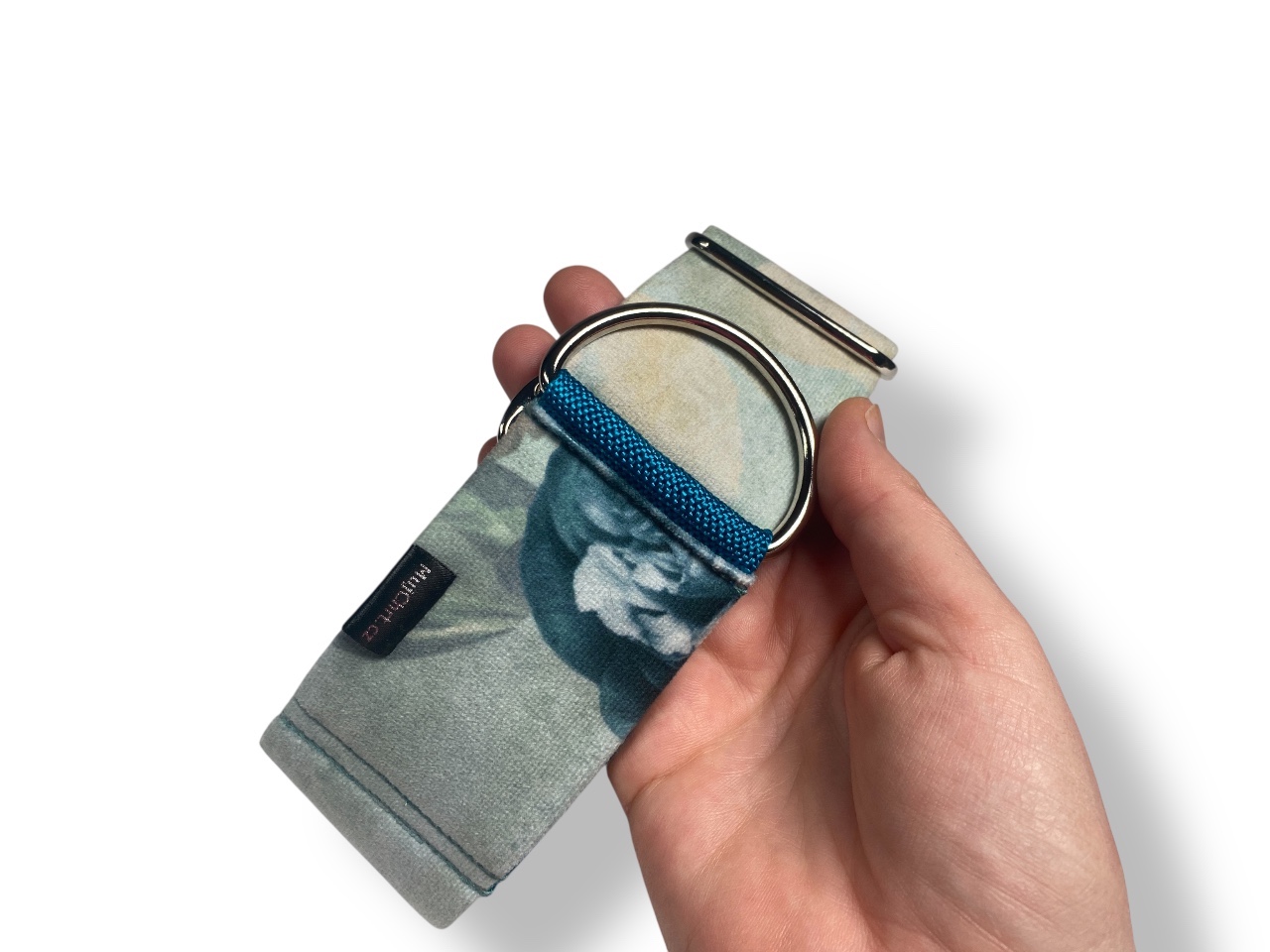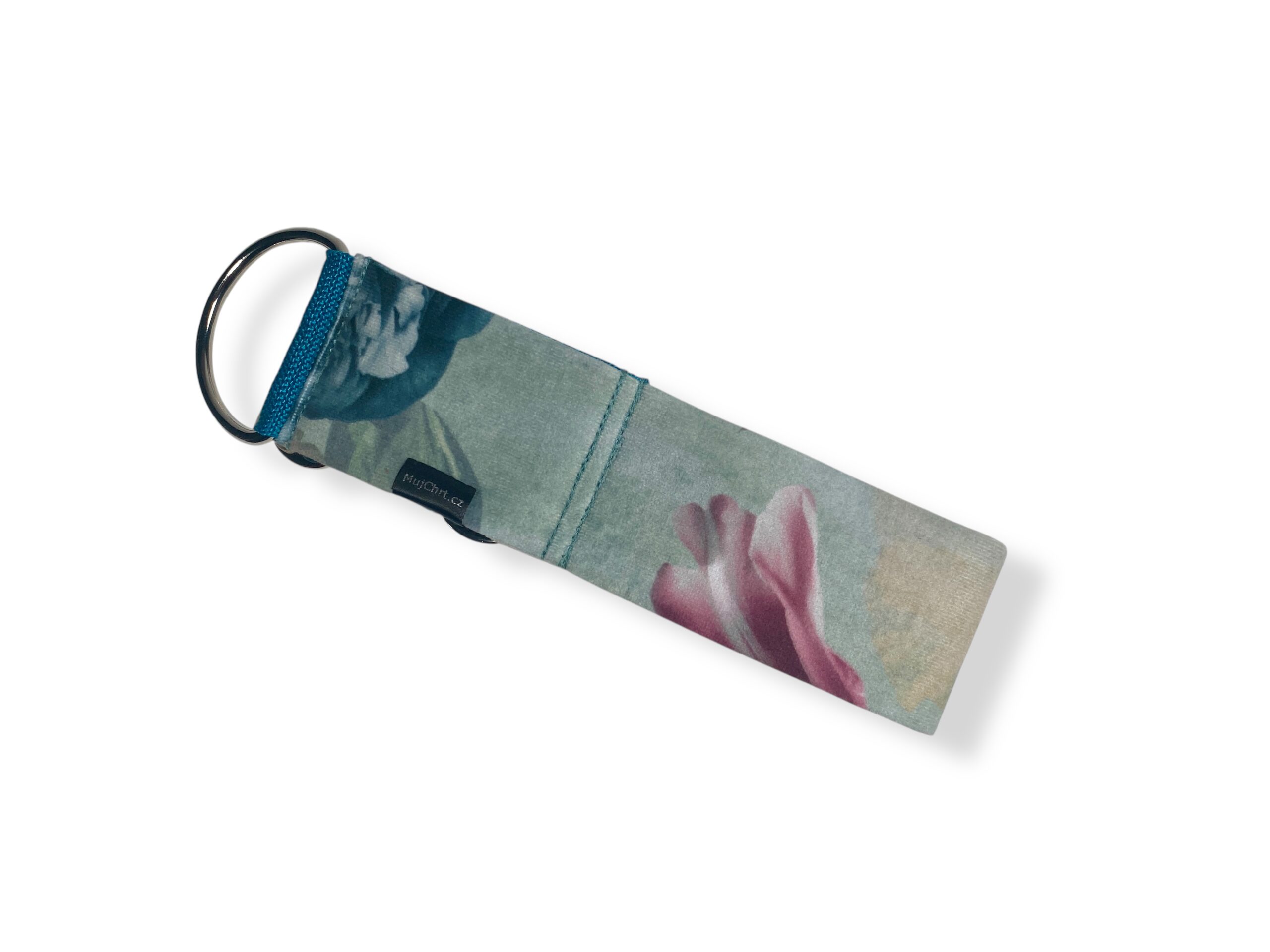 Obojek pro chrta polostahovací, Květy petrolejová, velur je vyrobený z velurové látky se sametovým chloupkem. Je tak velice jemný a šetrný i k citlivé kůži. Jádro tvoří pevný polypropylenový popruh.