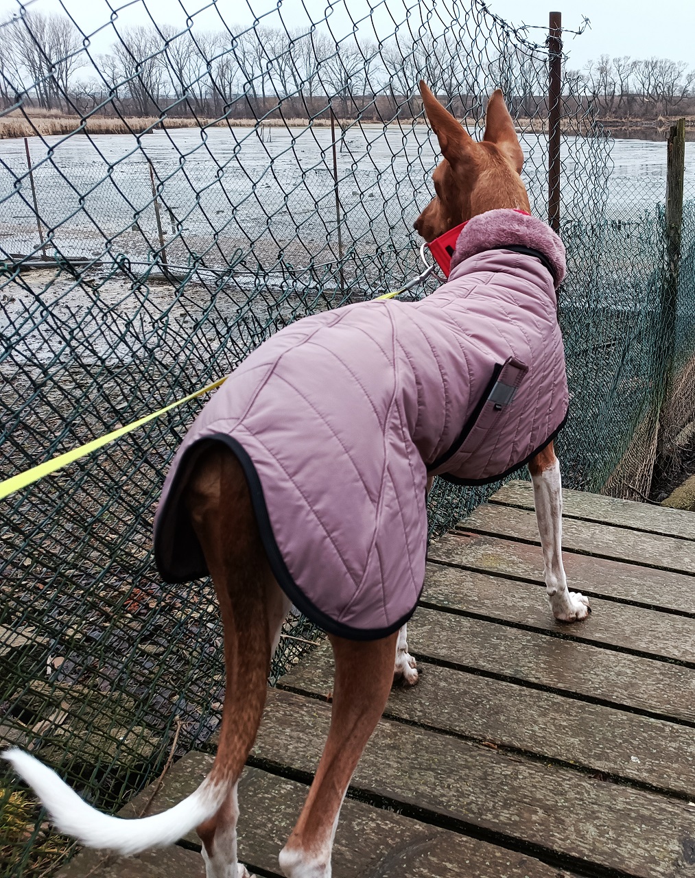 Střh bundy Alta nabízíme běžně v klasickém chrtím střihu s přesahem přes ocas. Někteří chrti ale při aktivitě ocas zvedají do vodorovné polohy, nebo ho jako jako středomořská plemena (podencové a další) dávají vysoko nahoru. V takovém případě je vhodnější zvolit alternativní stři bundičky, jak je vidě v následující galerii. Potřebujete-li tuto úpravu střihu, kontaktujte nás, prosím.